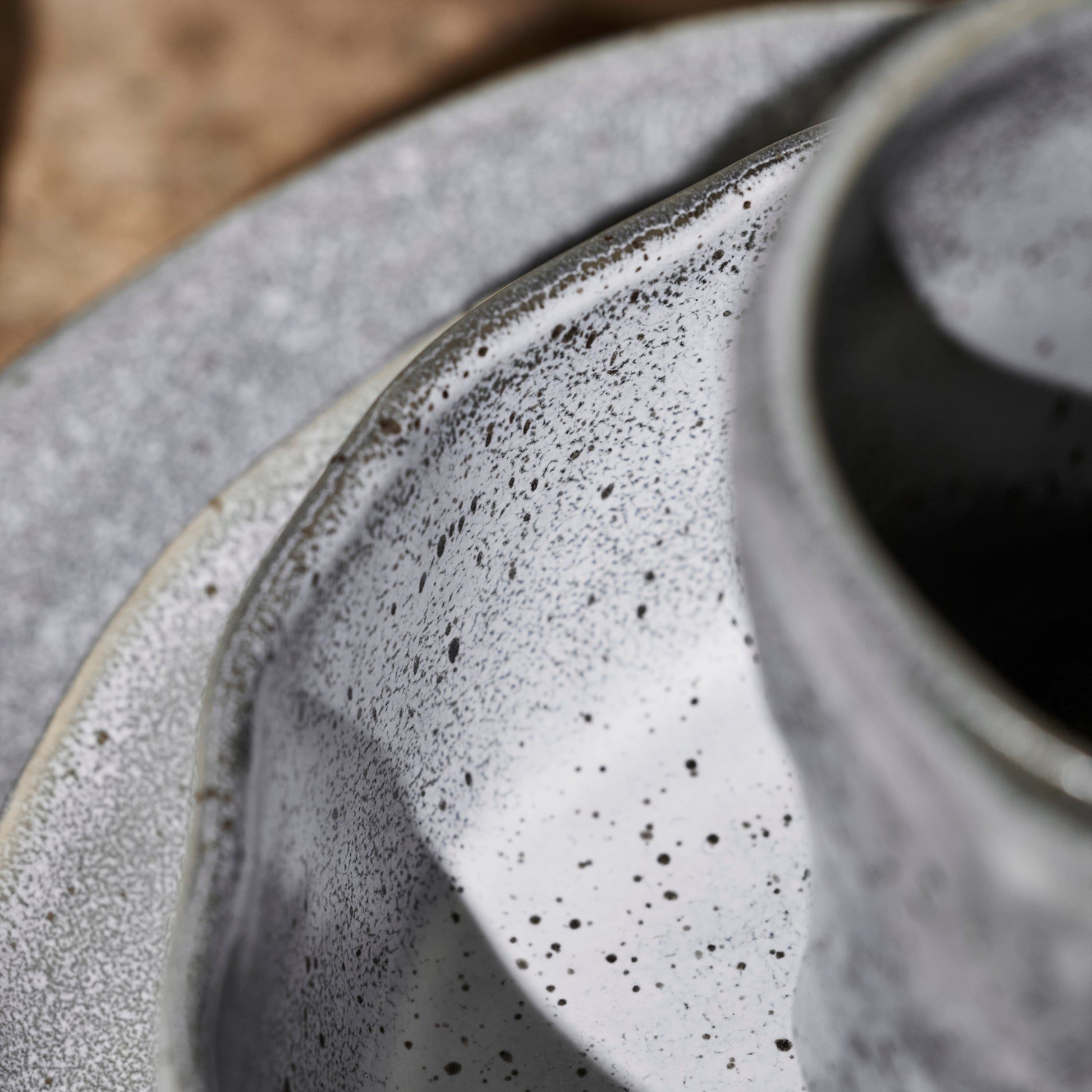 Stoneware Organic Round Dinnerware Set, Grey Speckled.