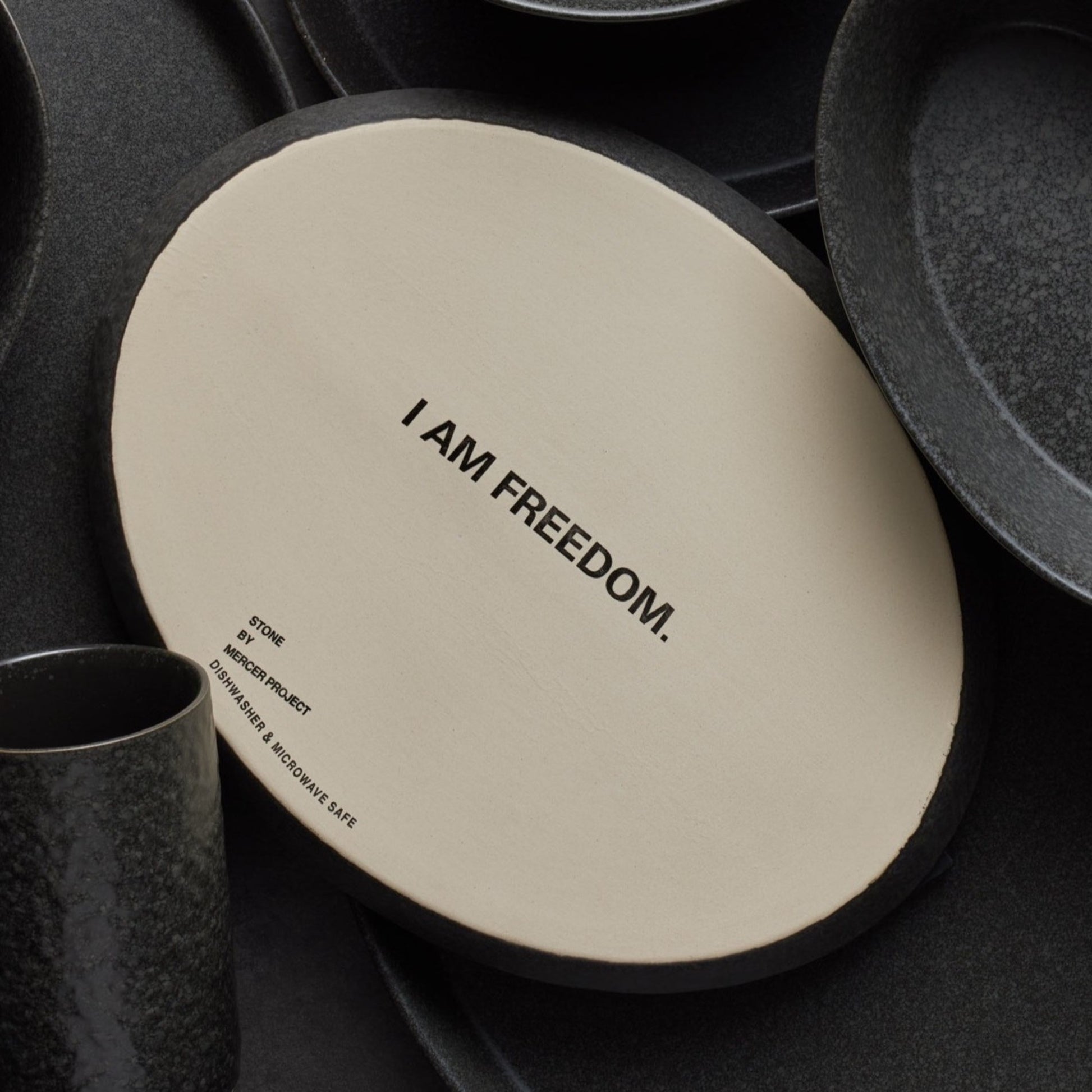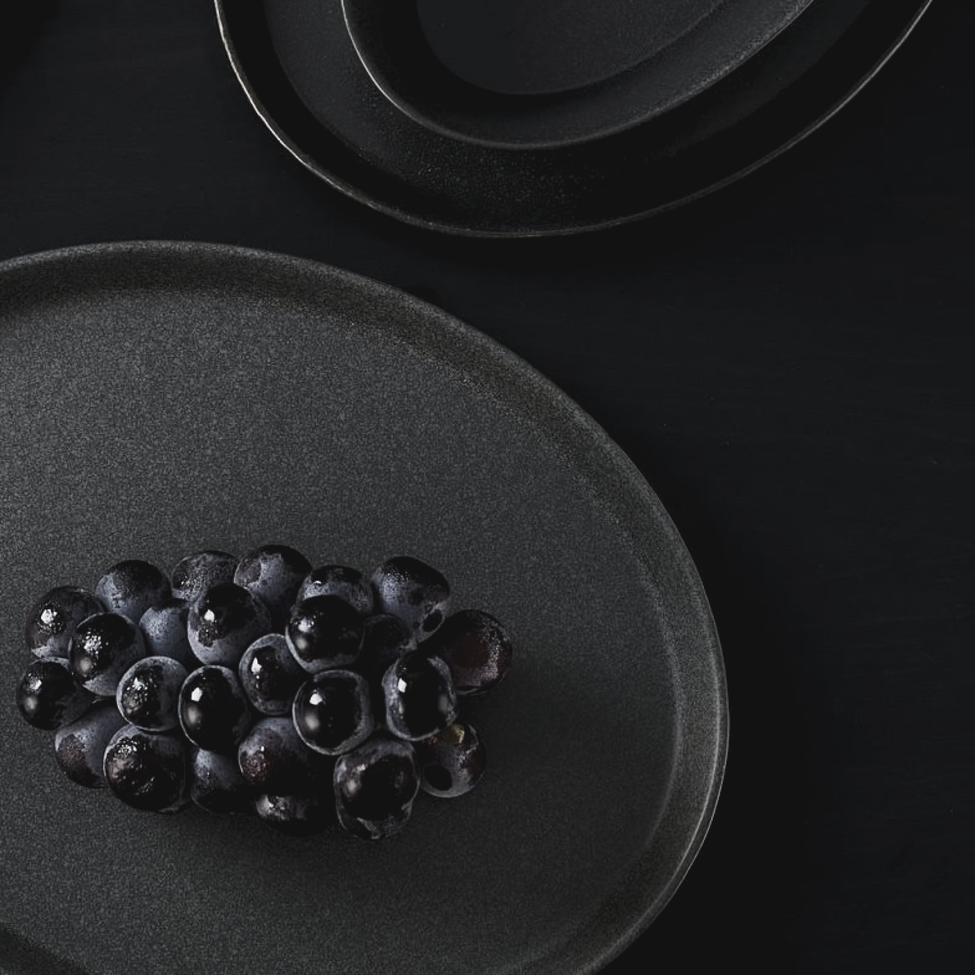 Stoneware Organic Oval Dinnerware Set, Charcoal.