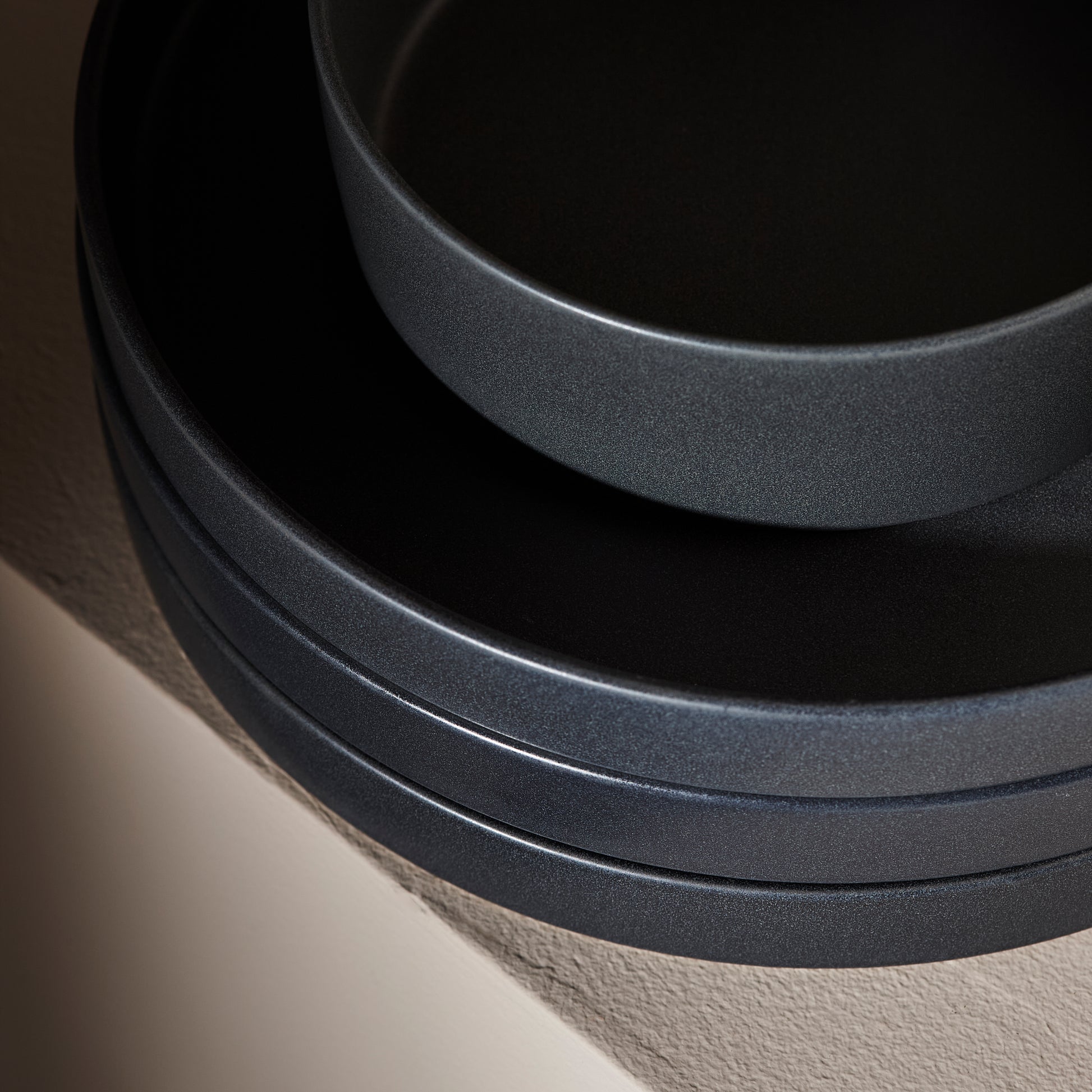 Stoneware Organic Round Dinnerware Set, Charcoal.